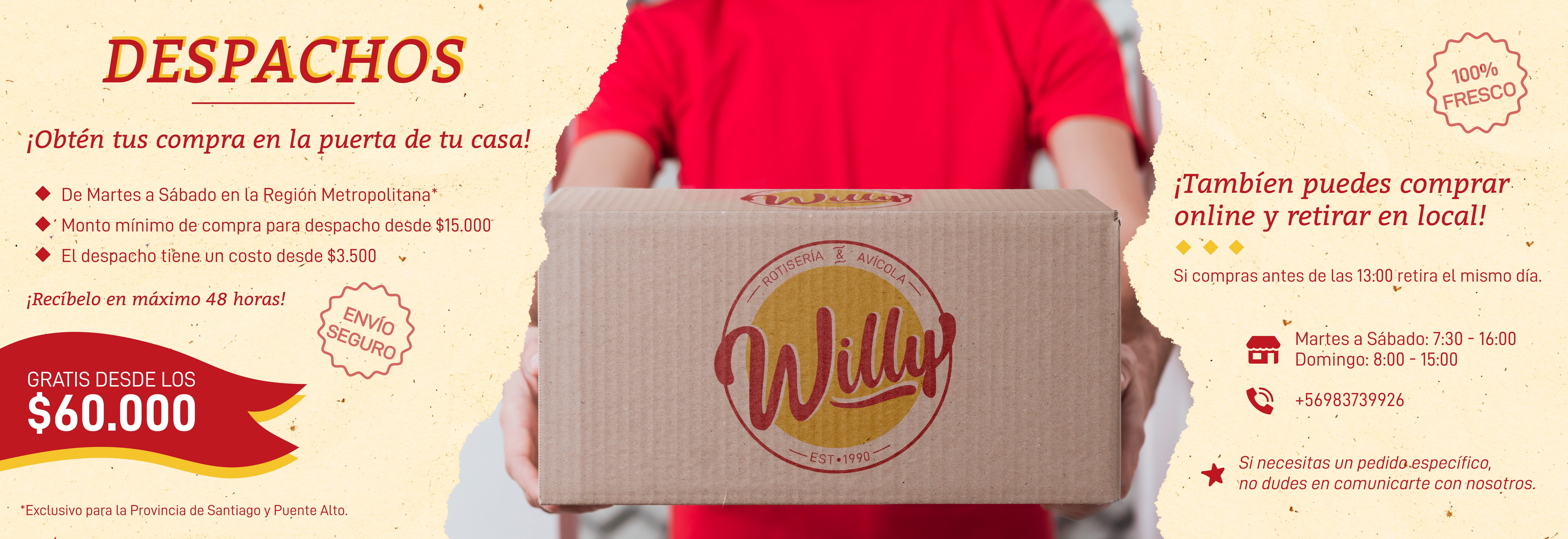 Despachos de martes a sábados | Despacho gratis por compras sobre $60.000. | Monto mínimo de compra $15.000.